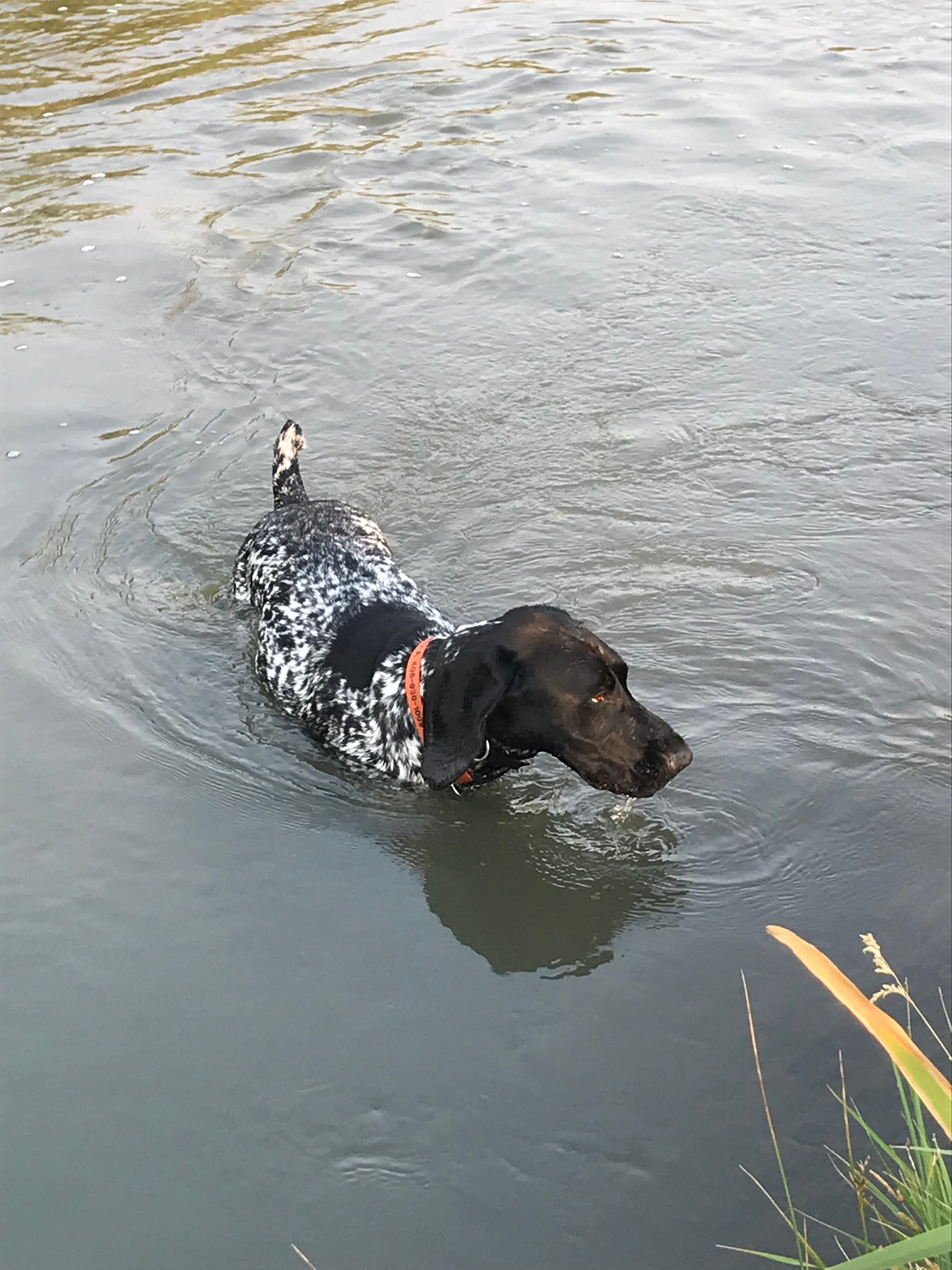 You may be thinking this seems like a lot of work with a dog that is bred to hunt, but remember, GSPs are not retrievers like Labs. GSPs hunt and point by instinct. Retrieving is almost always taught to them by humans and water search and retrieves are the most difficult skill to learn and teach!